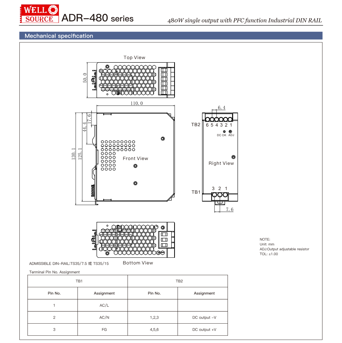 ✅ Công suất đầu ra đơn 480W với chức năng PFC DIN RAIL công nghiệp