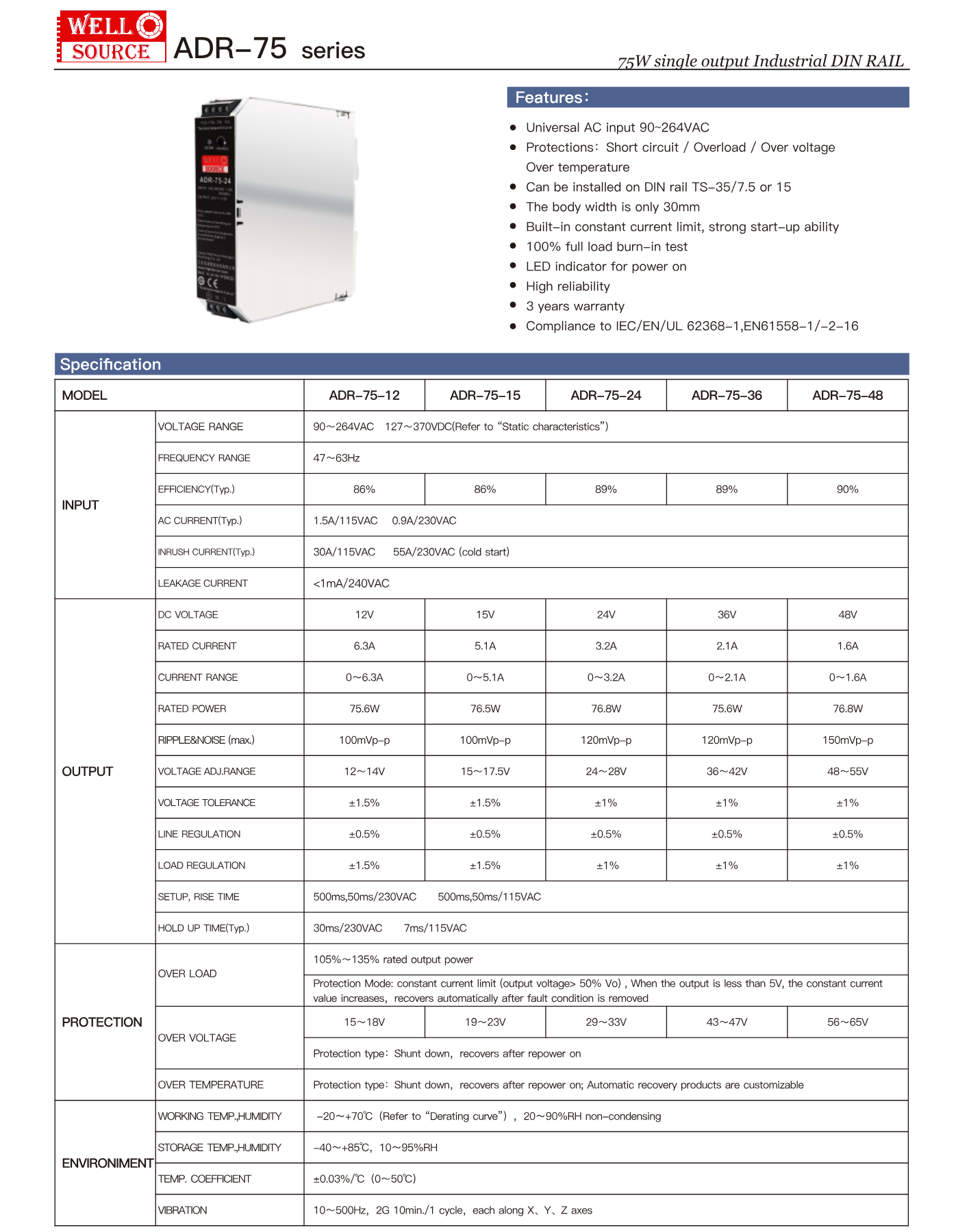 75W đầu ra đơn DIN RAIL công nghiệp
