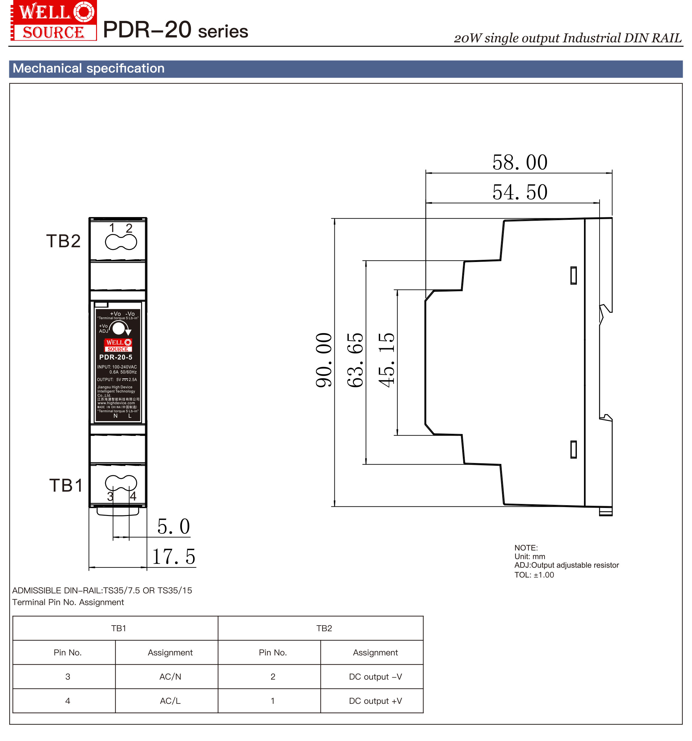 • Mã sản phẩm: PDR-20-24 SPEC