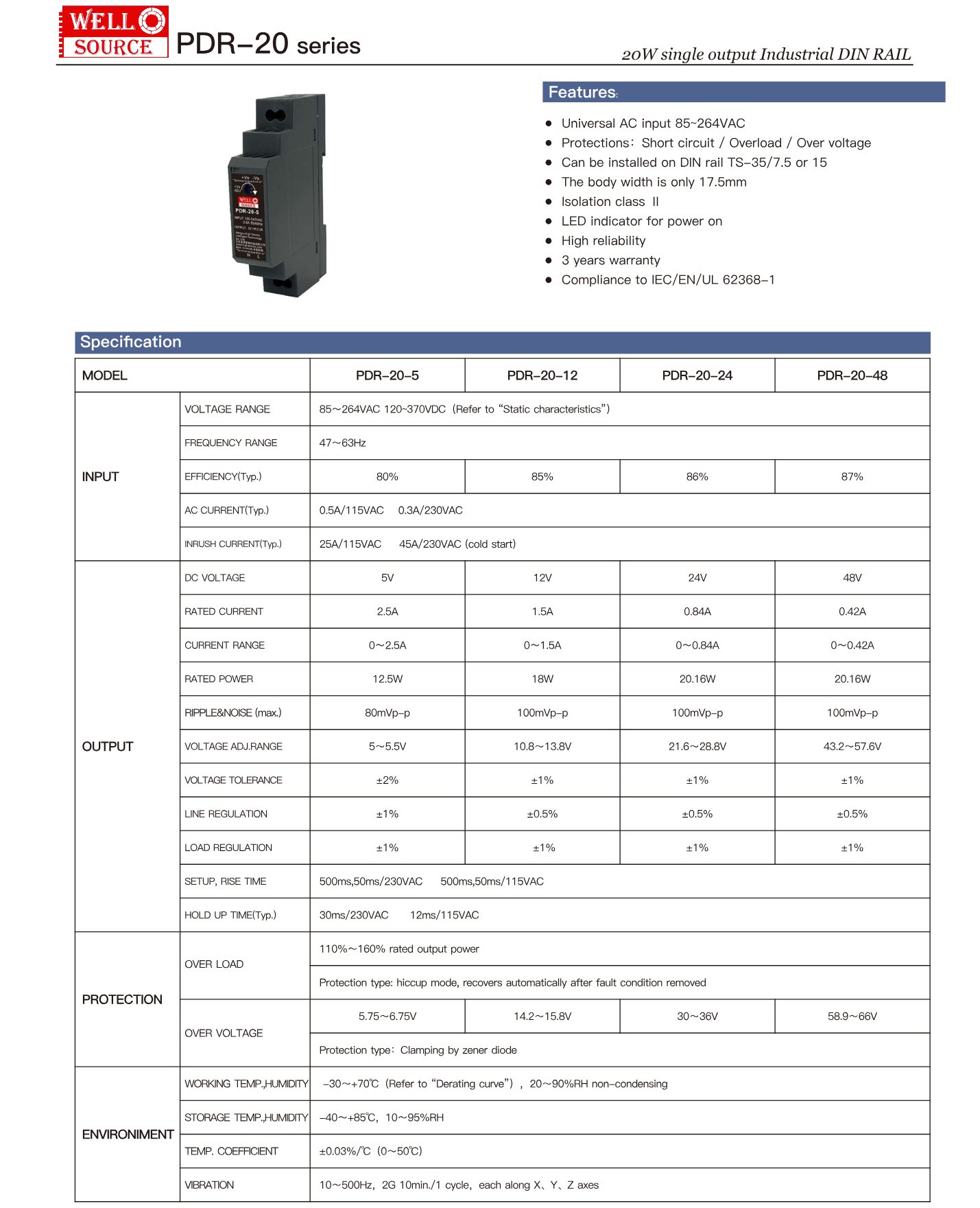 ✅ 20W đầu ra đơn DIN RAIL công nghiệp