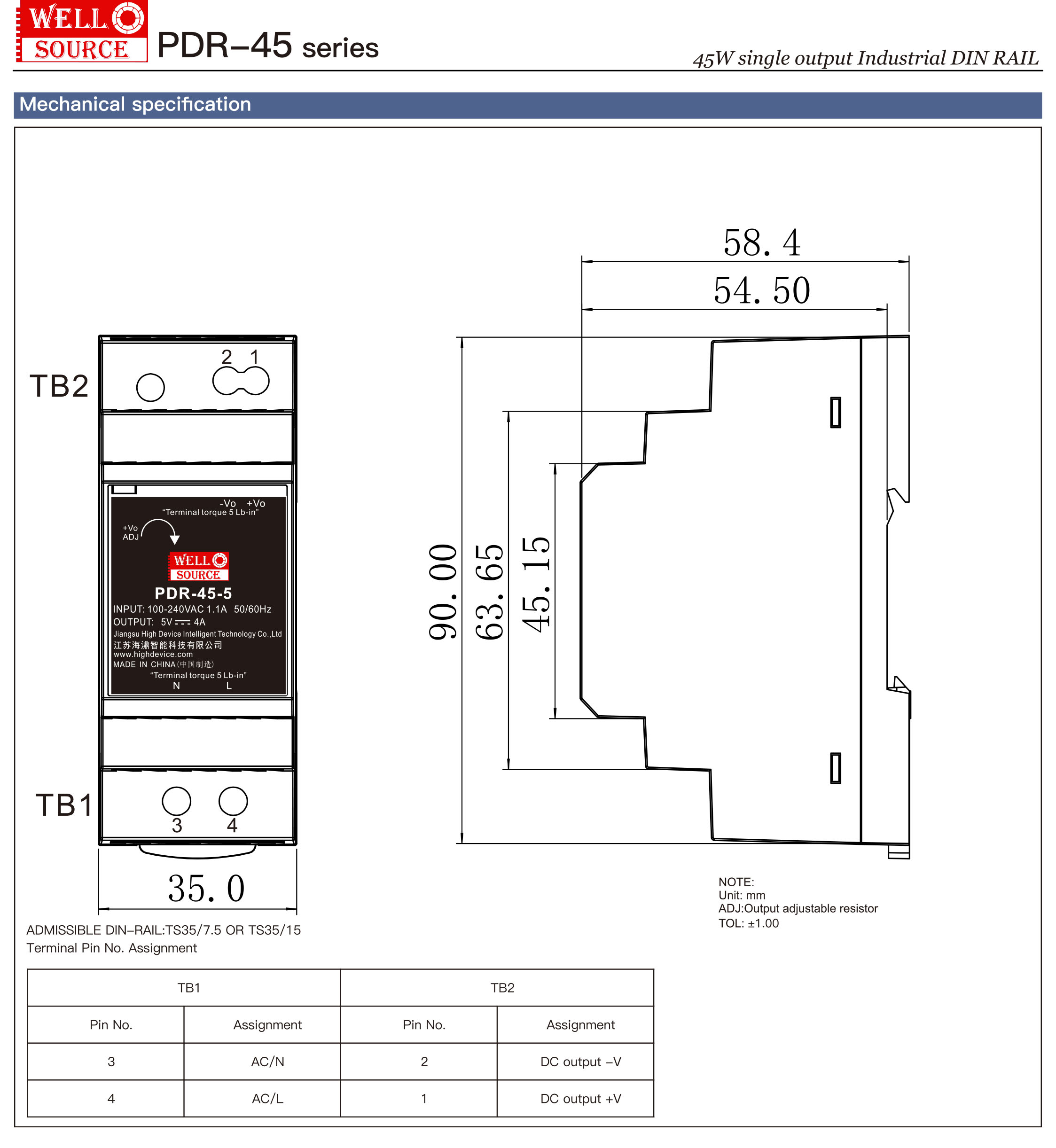 ✅ Có thể lắp trên thanh ray DIN TS-35/7.5 hoặc 15